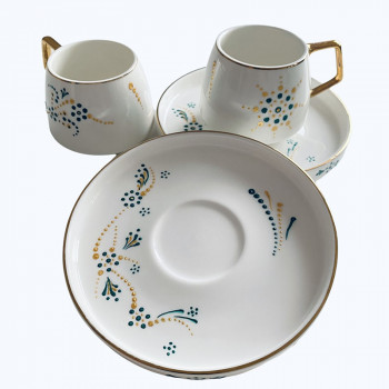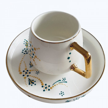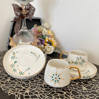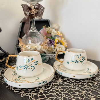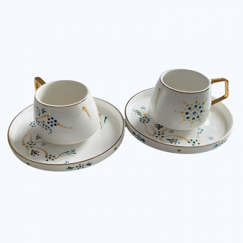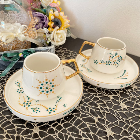 Set cani 2 cu farfurii pentru expresso, pictate manual , 85ml.